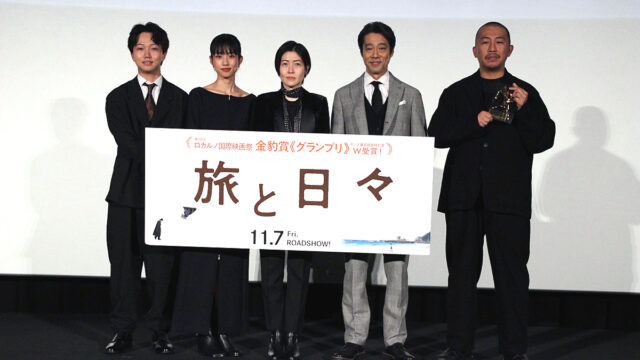 登壇者:シム・ウンギョン、堤 真一、河合優実、髙田万作、三宅 唱監督 第78回ロカルノ国際映画祭で最高賞となる金豹賞とヤング審査員特別賞のW受賞した映画『旅と日々』のプレミア舞台挨拶が都内で行われ、シム・ウンギョ...