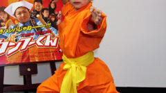 続けて質問に答えたのは主役のチャン・チュワン。「この映画のオーディションに受かった時は、とてもうれしかったです。カンフーは5歳から始めたので、今年で4年勉強しています」と、8歳にしては計算が合わない答え。「将来は、ジャッキー・チェンさんやジェット・リーさんのようなアクション・スターになりたいと思います」と、小さいながらも志は高い。しなやかで強靱な体を維持する秘訣を探ろうと好物を聞くと、「いろいろなものを食べますが、好きなのはお肉です。日本の食事で美味しかったのは、やはり焼き肉です」とうれしそうだ。