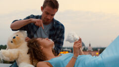 併せて解禁された本編映像は、主人公の学者アリシア(ティルダ・スウィントン)がグランドバザールで購入した小瓶を滞在先のホテルの洗面台で洗っていると蓋が開き、カラフルな煙と共に巨大な魔人(イドリス・エルバ)が現れるシーン。ドアまで伸びる大きな黄金の足に驚くアリシア。果たして、彼女が目にした魔人の姿とは……。
