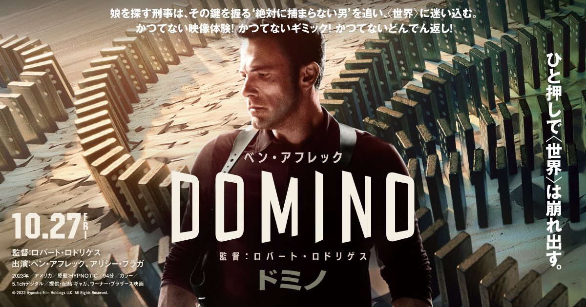 ベン・アフレック×映像の魔術師、ロバート・ロドリゲス監督がタッグを組み、公開されるやいなや、瞬きさえも許さないその挑戦的なストーリーと革新的な映像で一気に話題を浚った最新作『HYPNOTIC』(原題)の日本公開タイトルが『ドミノ』に決定、ギャガ、ワーナー・ブラザース映画の配給で、10月27日(金)より全国公開する。