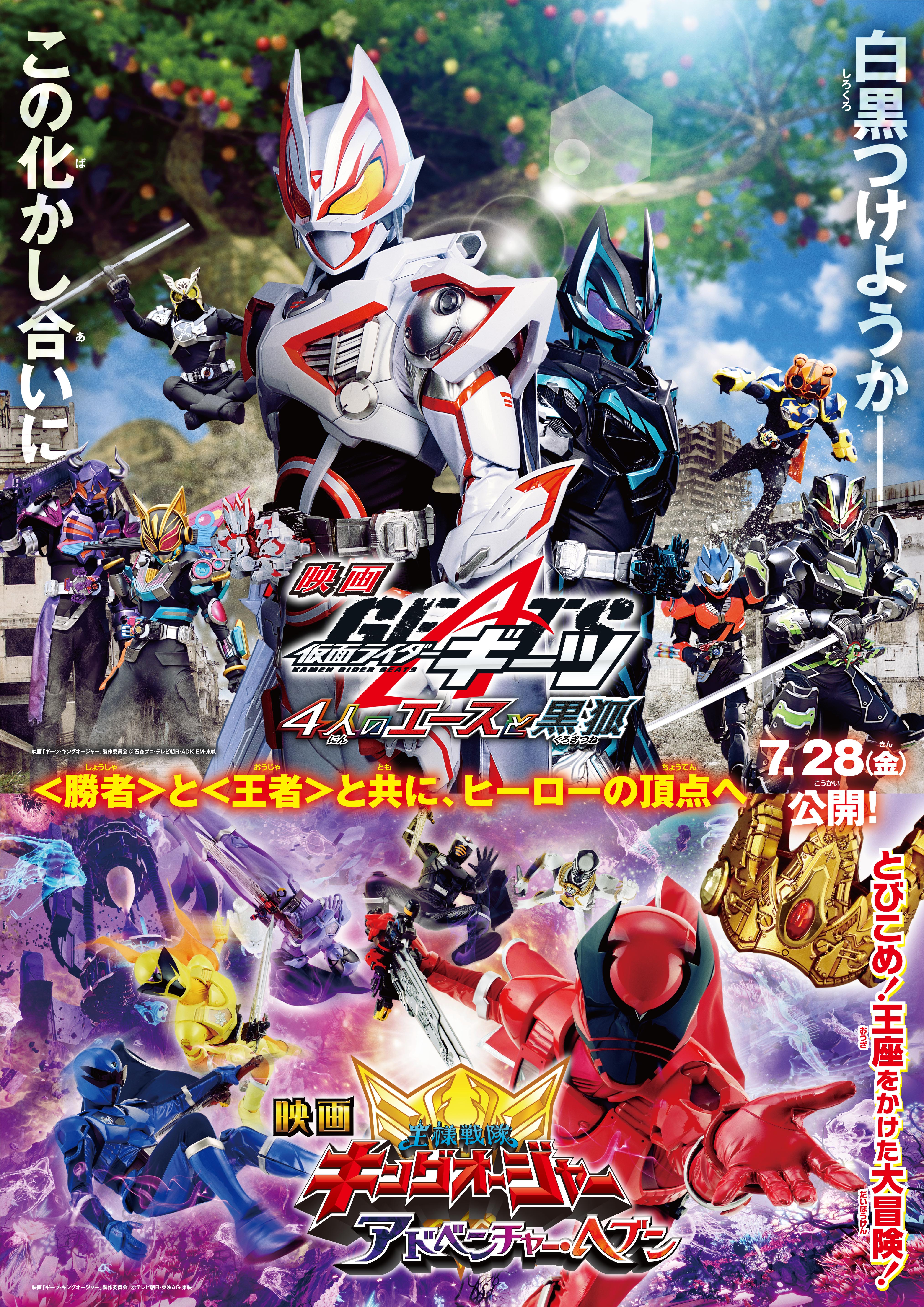 映画『仮面ライダーギーツ 4人のエースと黒狐』映画『王様戦隊キングオージャー アドベンチャー・ヘブン』が大ヒット上映中!