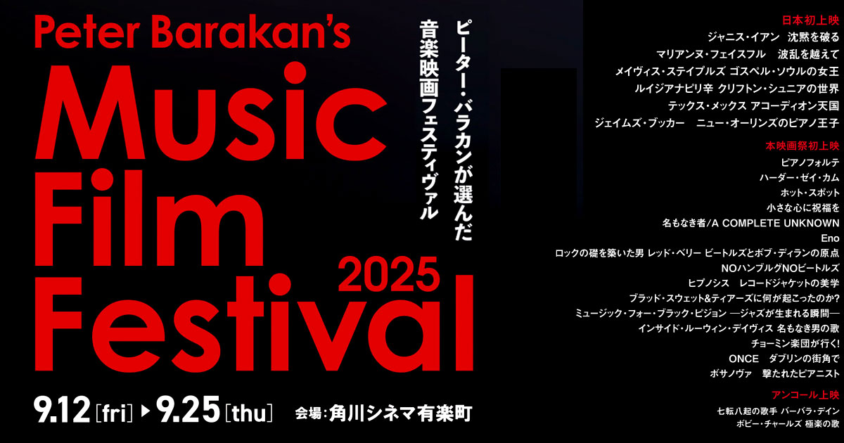 近年公開され大反響を巻き起こした作品やなかなか上映機会の無い作品など、多彩な驚きや魅力に触れることのできる、音楽ファンも映画ファンも必見のラインナップになっている【Peter Barakan’s Music Film Festival】は9月21日(木)まで角川シネマ有楽町にて上映中。
