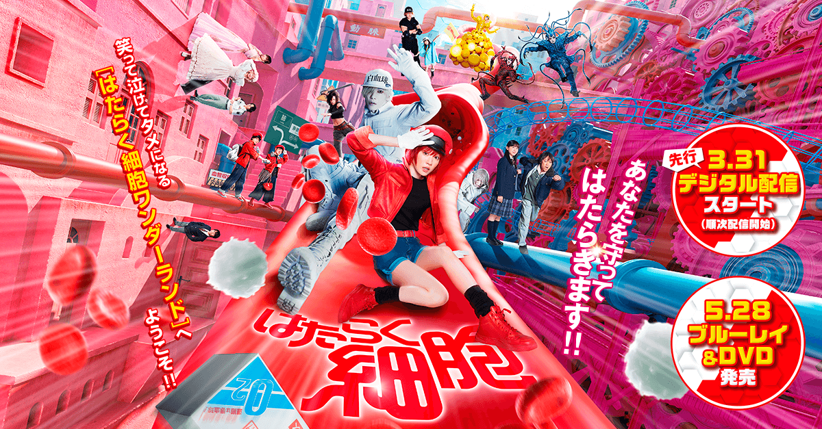 細胞を擬人化して描き、その斬新かつユニークな設定が大きな話題を呼んだ漫画『はたらく細胞』(著者:清水 茜、講談社「月刊少年シリウス」所載)。2015年連載開始とともに話題沸騰、2017年にフランスの新聞『ル・モンド』が選ぶ「この夏推薦する図書リスト」に選出されるなど国内だけでなく世界中から注目を集め、2018年のアニメ化でさらにブームは過熱。以後、現在まで数々のスピンオフ作品が発表され続けており、シリーズ累計発行部数1,000万部を超えるメガヒットを記録。そして、このたび日本を代表する超豪華キャスト×スタッフ陣によって実写映画化!