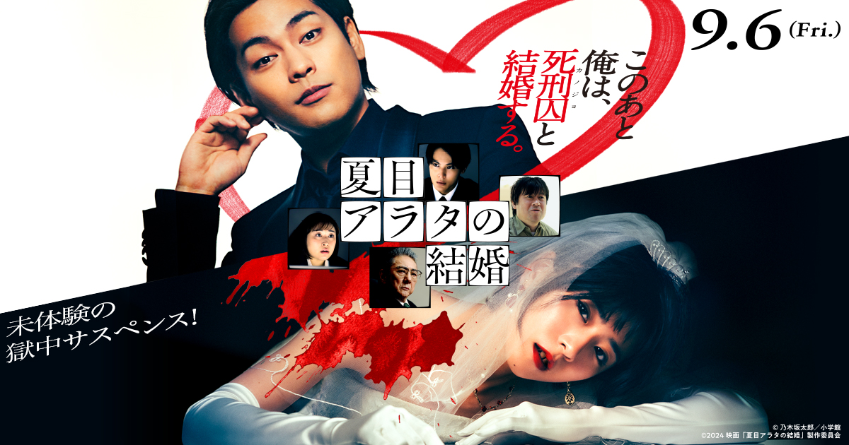 「医龍-Team Medical Dragon-」など、多岐にわたるテーマを緻密な人間描写を通じて表現することに定評がある乃木坂太郎が2019年から「ビッグコミックスペリオール」(小学館)で連載し、累計発行部数が240万部のベストセラー・コミックスとなっている「夏目アラタの結婚」(2024年1月完結)。連続殺人犯の死刑囚にプロポーズすることから始まる衝撃の獄中サスペンスは、主人公:アラタと死刑囚:真珠との頭脳戦や二転三転する展開が読者を惹きつけ、「次にくるマンガ大賞 2020」U-NEXT特別賞コミックス部門を受賞、世界最大級の日本アニメ・マンガのコミュニティ・サイト「MyAnimeList」でも紹介されるなど、国内外から高く評価されている。中でも、品川真珠が“怖かわいい”と話題を呼び、ファン・アートも多数公開されている話題作が、待望の実写映画化! 9月6日に全国公開となる。