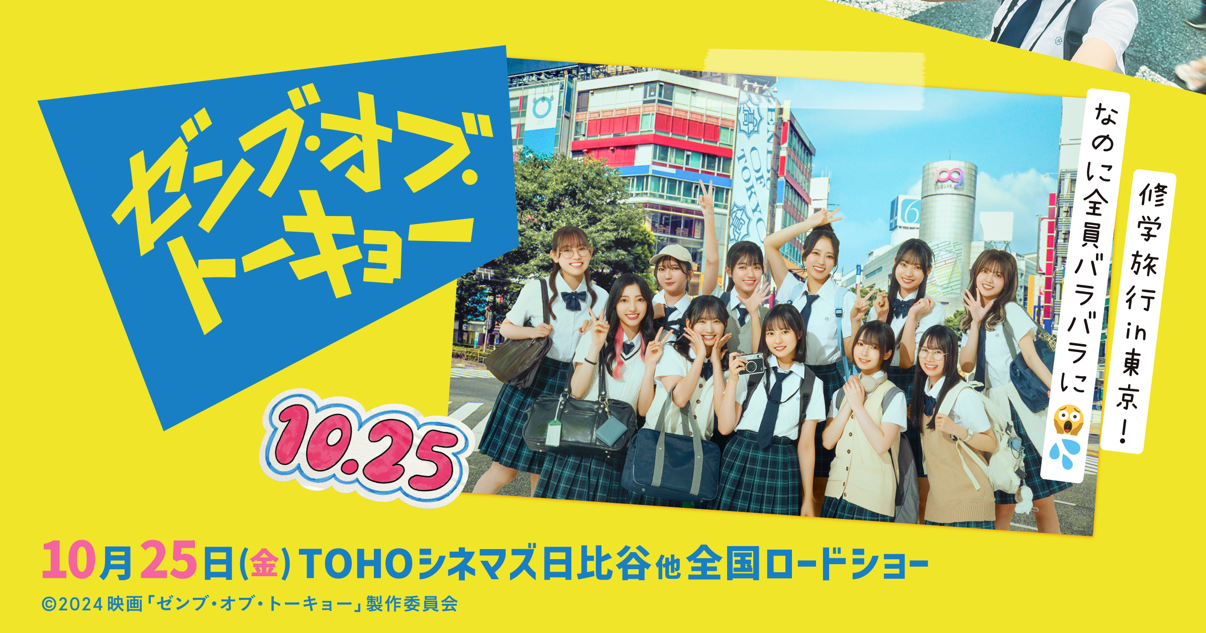 本作は、修学旅行で訪れた東京が舞台。池園優里香(いけぞの・ゆりか/正源司陽子)は、桐井智紗(きりい・ちさ/渡辺莉奈)、羽川 恵(はがわ・めぐ/藤嶌果歩)、説田詩央里(せった・しおり/石塚瑶季)、枡谷綾乃(ますたに・あやの/小西夏菜実)と同じ班の班長。、池園は憧れの大都会であれもこれも“ゼンブ”楽しみたい!と、分刻みのスケジュールを計画し、修学旅行を心待ちにしていた。待ちに待った修学旅行、計画通りに進んでいると思っていたらみんなバラバラに。とりあえず東京を満喫するために一人で巡ることになったのだが、何かが足りないことに気づき始める。今回解禁された場面写真は、そんな池園のわくわくした表情やみんながいなくなってしまったことに唖然として立ち尽くしている姿など、豊かな表情が捉えられている。