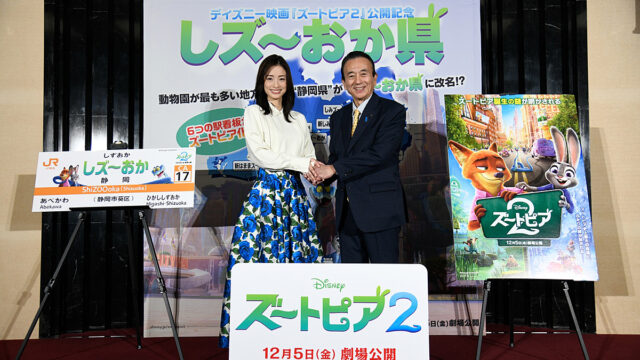 記者会見『ズートピア2』&「静岡県」パートナー都市発表会見 登壇者:上戸 彩(ジュディ役)、鈴木康友(静岡県知事) 11月28日(金)に静岡県庁にて静岡県知事である鈴木康友による記者会見が開催。『ズートピア2』の公開を記念して、日本全国がズートピア化するプロモーションの一... 2025.11.28記者会見