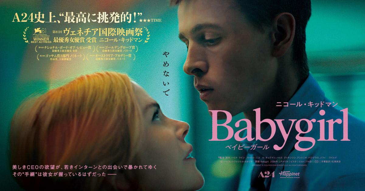 A24製作×主演ニコール・キッドマンのタッグで、第81回ヴェネチア国際映画祭にて最優秀女優賞を獲得、第97回アカデミー賞®最有力と注目を集める、映画『ベイビーガール』が、2025年3月28日(金)に全国公開となる。