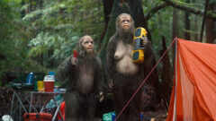 今回解禁となったのは、本作のメインビジュアルと本予告、そして9点の場面写真。メインビジュアルでは、キャンプをしていたと思われる人々の”忘れもの”を片手に佇む2頭のサスカッチが捉えられている。ラジオカセットを手に持っているサスカッチは、なんと『マッドマックス 怒りのデス・ロード』などでも知られるライリー・キーオ。その見事な変貌っぷりからも目が離せない。