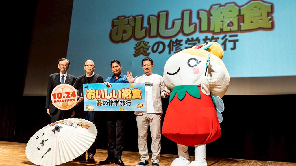 市原は舞台挨拶終了を前に「この“おいしい給食”で誰かが笑ってくれないかな、悲しんでいる方が少しでも元気になってくれないかな、と私は本気でそう思ってきました。シーズン2の頃にコロナ禍が始まり、撮影も止まってしまいました。そのとき私は本当に悔しかったんです。エンターテインメントの力で少しでもお客様に楽しさや元気を届けたいと思っていたのに、それがすべて崩れていくように感じたからです。一度は“おいしい給食”を投げ出しましたが、ゼロに戻って、改めてエンターテインメントの根源を見つめ直しました。誰もが安心して観られる作品でありながら、大人の方には道徳や人間愛といった深いメッセージも届けられるように――そんな思いを込めて作り上げました。子どものように大切に育ててきたこの作品は、今日ご覧いただいた瞬間から皆さまのものです。どうか心の片隅に置いていただき、これからも『おいしい給食 炎の修学旅行』を可愛がっていただければ幸いです。本日はお時間をいただき、誠にありがとうございました」と挨拶し、温かい拍手が沸き起こった。