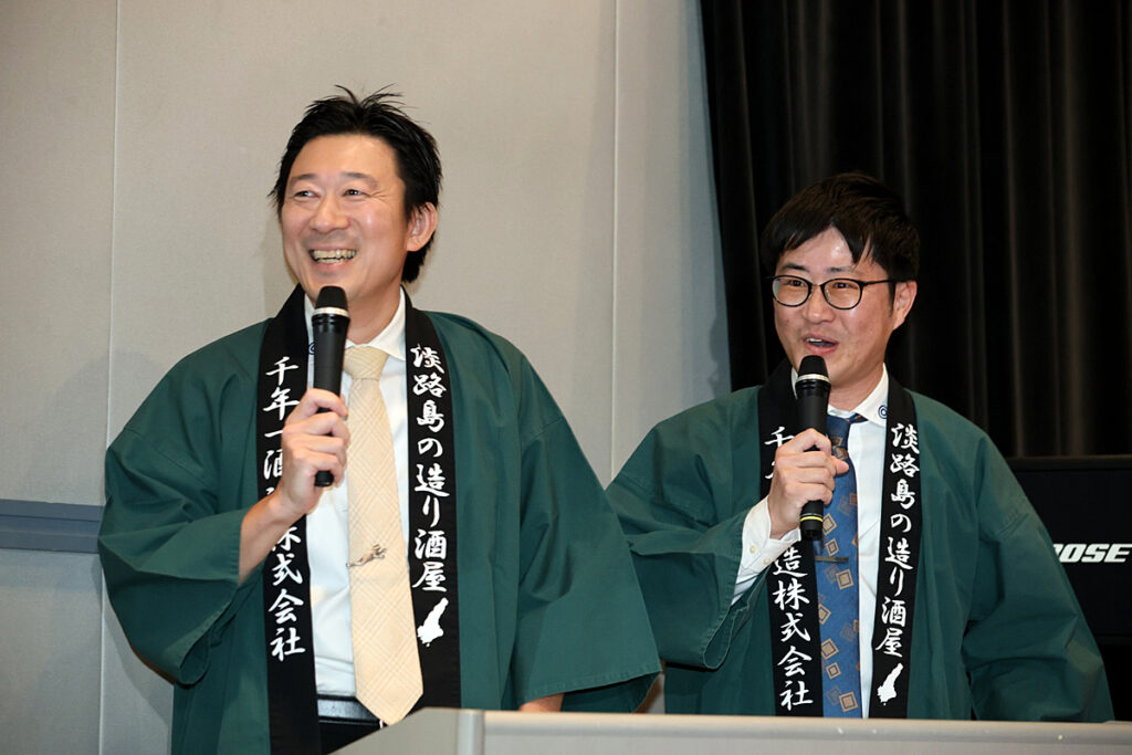 この日のイベントの司会は、世界で唯一の利き酒師の漫才師であるコンビ、にほんしゅのふたりが担当。会場からのあたたかい拍手にふたりとも「熱燗のようにあたたかいお客さんです」と感激した様子を見せる。