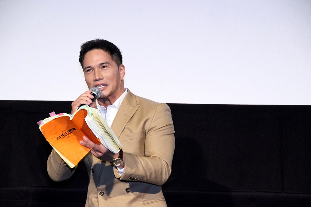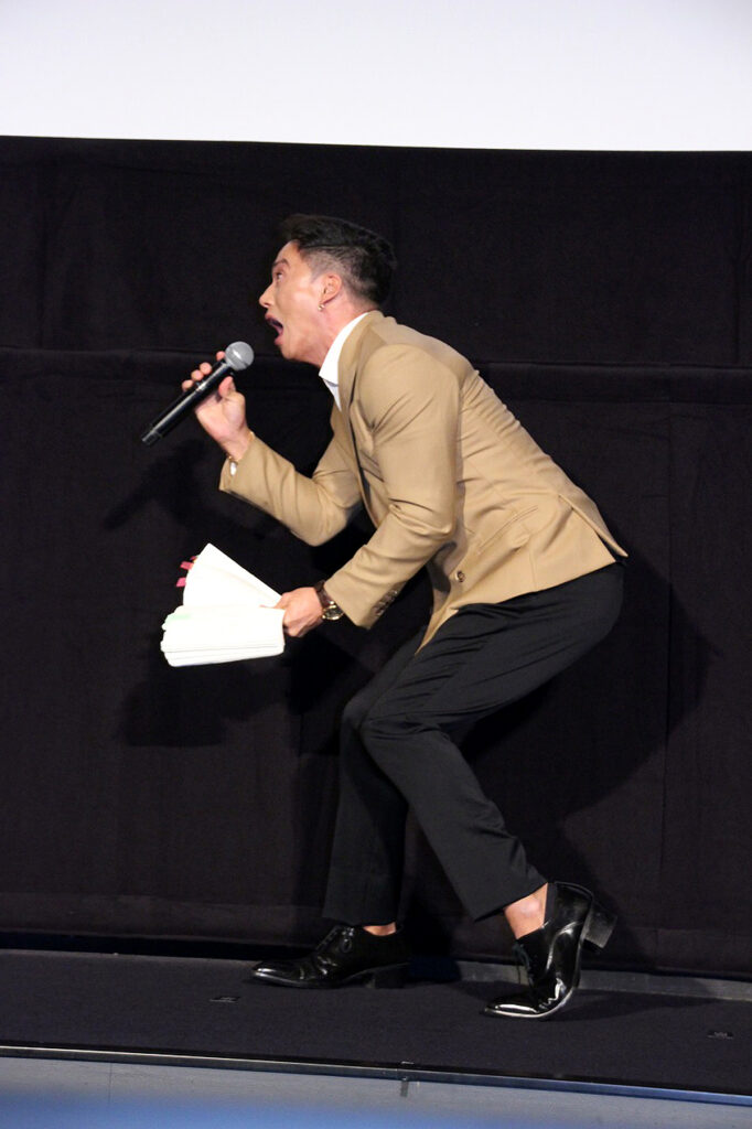 最初に、市原隼人が一人で登壇し、「私は給食が好きだ。給食を食べに学校に来ていると言っても過言ではない……」といつもの口上を切り出し、台本を片手に“食する甘利田幸男”の姿を生演技で、迫真のゼスチャーと言葉で演じて会場をザワつかせた。食事シーンの臨場感がガンガン伝わってきて場内には大きな笑い声も起きた。