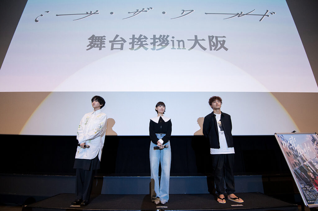 『ミーツ・ザ・ワールド』の舞台挨拶 in 大阪が10月4日(土)に開催され、主演の杉咲 花をはじめ、板垣李光人、松居大悟監督が登壇。ロケ地となった大阪で、それぞれが作品への想いや撮影時のエピソードなどをたっぷり語った。さらに杉咲花への誕生日サプライズも実施し、会場は大きな盛り上がりを見せた。