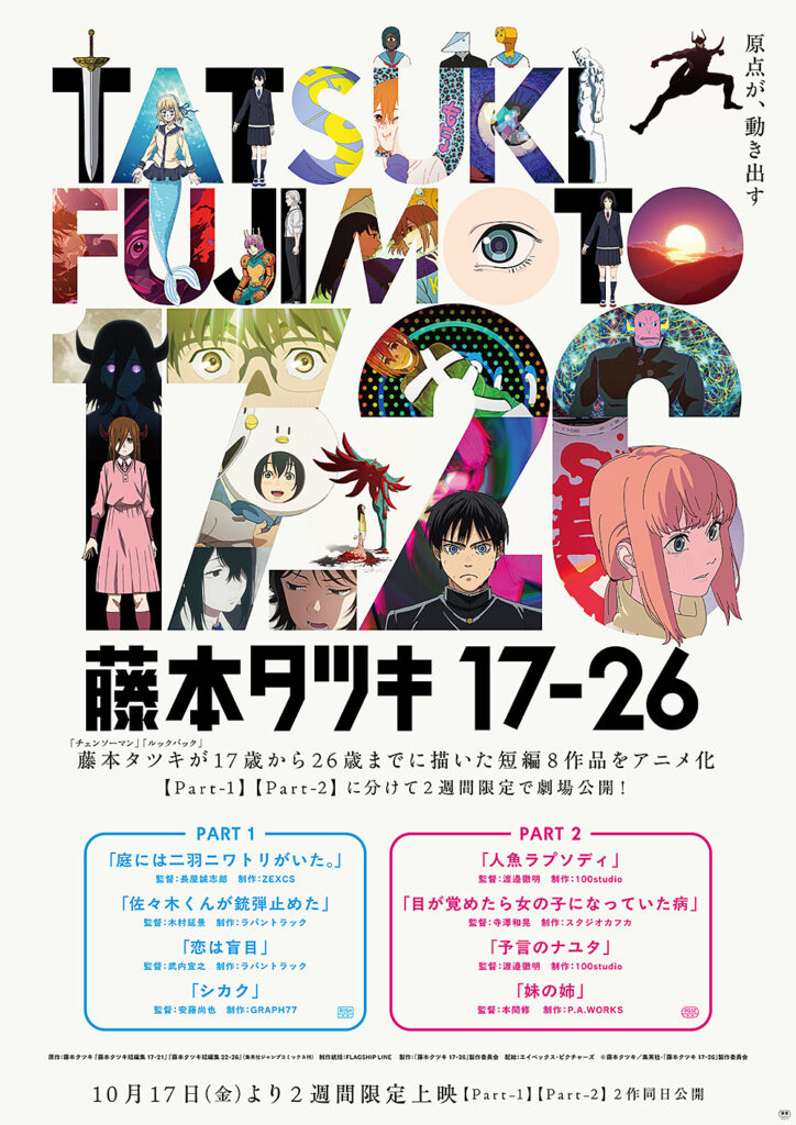 『チェンソーマン』、『ルックバック』の漫画家・藤本タツキが17歳から26歳の間に描いた短編8作品をアニメ化し、10月17日(金)より2週間限定上映、11月8日(土)よりPrime Videoで世界独占配信されることが先日発表されたアニメ『藤本タツキ 17-26』。