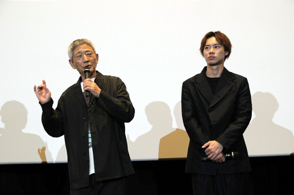 W主演として、主人公のヤクザの男・阿久津の過去と現在を小林と戸塚が演じた。現在の阿久津を演じた小林は「オファーが来たとき、最近のアニメは若い男女の恋愛ものじゃないと当たらないんじゃないのか、老ヤクザが死にかけて大逆転なんて、誰が観るんだって、監督に失礼なことを行ってしまいました。ゴメンナサイ」と木下監督に侘びを入れる。「2年ぶりに再会して完成した作品を改めて観て、感動してしまいました。皆さんご覧になってどうでしたか?」と満員の客席に向かって呼びかけると、観客からは大きな拍手が起こった。