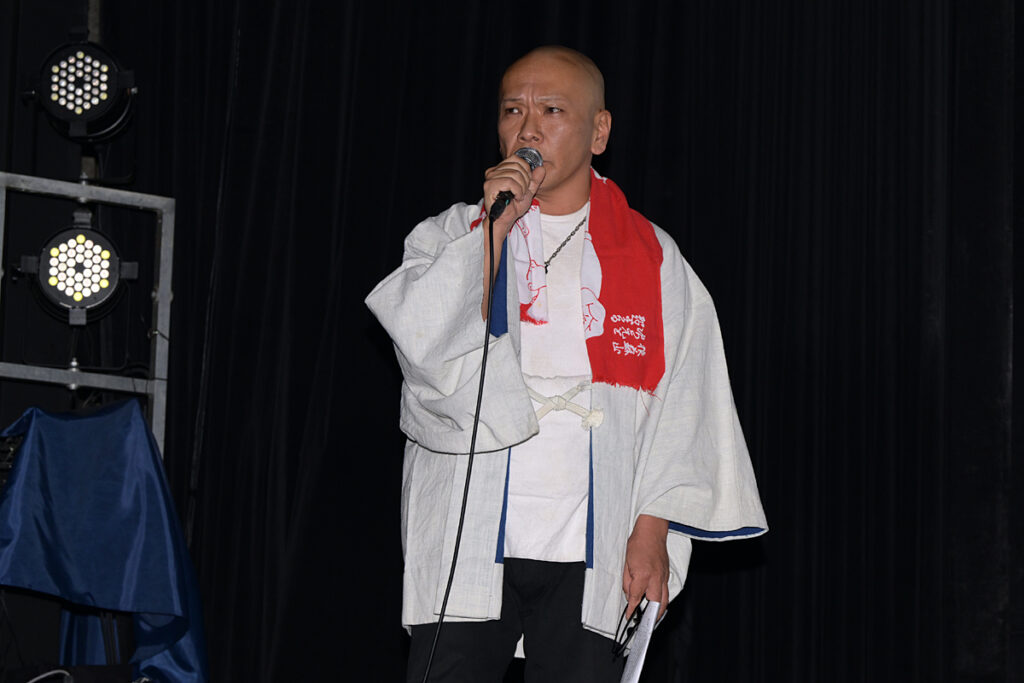 満席の観客のもとに団吉を演じた切腹ピストルズの隊長・飯田団紅がMCとして登場。2018年から豊田組に参加した経緯を話し、“次元を超えた”観客を盛り上げると、飯田の呼び込みで監督・キャストが登壇。