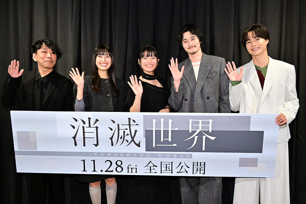 芥川賞作家・村田沙耶香氏によるベストセラー小説を原作にした映画『消滅世界』(11月28日公開)がついに完成! 10月20日には新宿武蔵野館にて完成披露上映会が実施され、主演の蒔田彩珠、共演の栁俊太郎、恒松祐里、結木滉星、そして川村 誠監督が登壇した。