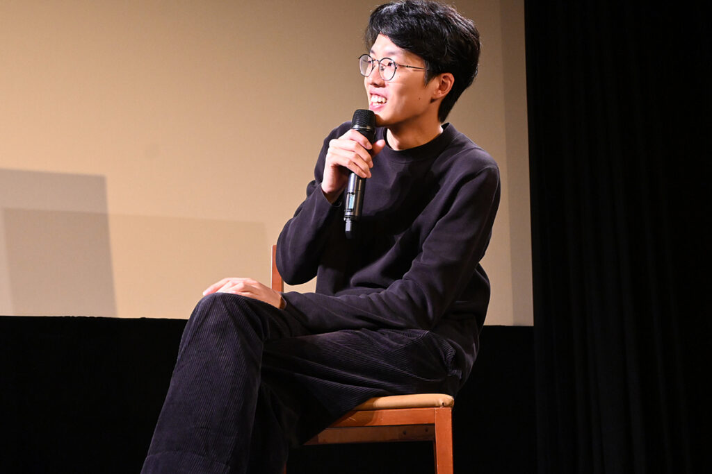 小島央大監督の前作『JOINT』からその才能に着目していたという井筒監督は、開口一番「ようやった!」と絶賛。特に、主人公の島田がPTSD(心的外傷後ストレス障害)を発症する打ち上げ花火のリアリティを取り上げ、「あれ、本物の花火でしょ? CGではなく、実写でやるからこその迫力があった。花火の打ち上がるタイミングと人物の動きを合わせるのもさぞかし難しかっただろうに。とにかく素晴らしかったですよ」と興奮気味に話す。小島監督によると、このシーンがクランクインだったようで、「新潟・小千谷の花火大会で撮影したんですが、打ち上げ音が大きすぎて役者の声が届かず、全員叫びながら撮影していました」と撮影秘話を吐露。