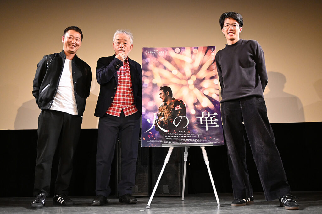 10月31日(金)よりユーロスペースほか全国順次公開を迎える映画『火の華』。この度、10月22日(水)に渋谷ユーロライブで公開直前試写会イベントが開催され、上映後に小島央大監督、エグゼクティブプロデューサーの成 宏基(ソン カンギ、アニモプロデュース)、そして特別ゲストに井筒和幸監督が登壇した。