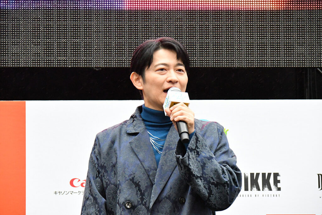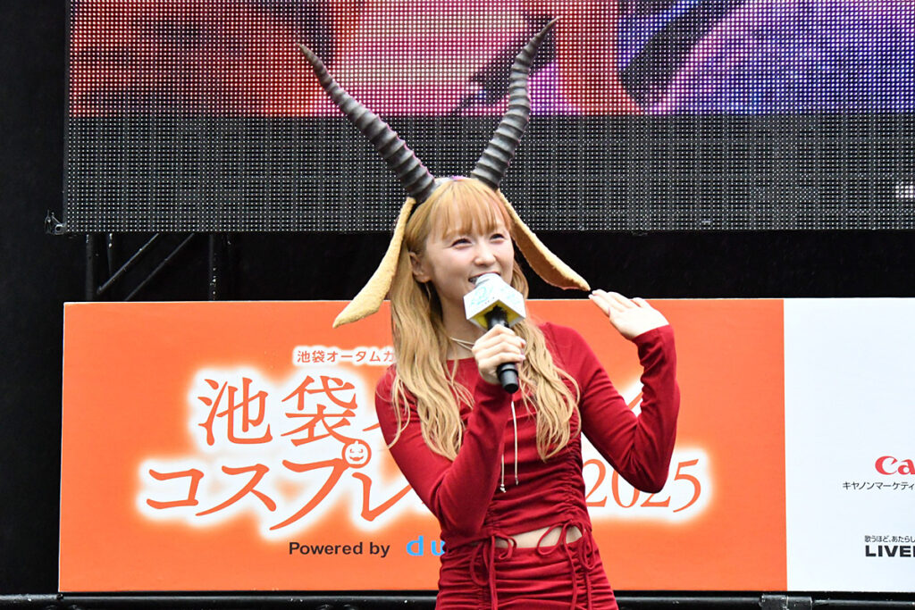 先日、同会場にて、ゲイリー役の日本版声優に決定したことを、ファンたちの目の前で発表したばかりの下野。開口一番、「デジャヴかなってくらい雨が降っていますが(笑)、ごめんなさい! 俺のせいではないと思うけど(笑)!」と雨の中集まった観客たちへ優しい気遣いを見せると、Dream Amiも「私は晴れ女のはずなのですが……すみません! 晴れにはできませんでした(笑)!」と話をあわせ、「何とかイベントができて良かったです」と胸をなでおろした。また、ハロウィンにちなみ、自身が演じたガゼルの仮装姿で登場したDream Amiは、衣装のポイントについて、「ガゼルの角を特注で作っていただきました! 寒いですが、ミニスカートで来ました!」とコメント。