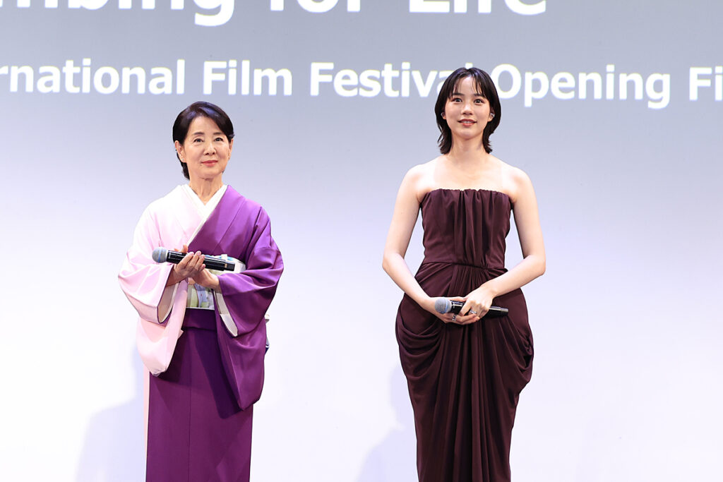 阪本順治監督は「本日は東京国際映画祭のオープニングにお越しいただきありがとうございます。スマホやPCの画面ではなく、大きなスクリーン、迫力のある音響でご堪能ください」と挨拶。吉永小百合、のんも東京国際映画祭のオープニング作品の上映に足を運んでくれた観客に感謝を示し挨拶。田部井淳子さんがモデルの多部純子を演じたことについて聞かれると吉永は「田部井さんには2012年にお目にかかっていて、それ以来明るく積極的で生き生きとした彼女のファンでした。山には20代の頃によく登っていました。本作で富士山やそのほかのいろいろな山に登って、大変では?と聞かれますが、とても幸せな時間でした」とコメント。