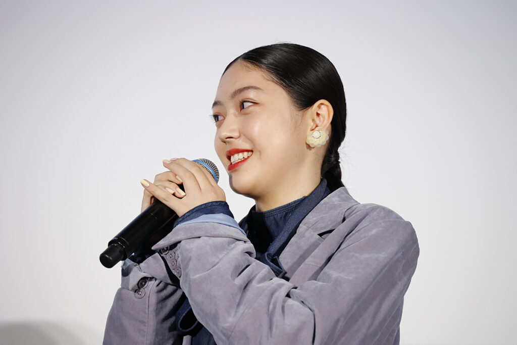 更に「撮影の半年前からダンスのレッスンを監督と受けました。監督から、特に呼吸を意識してほしいと演出いただいて、特に頑張ったシーンなので呼吸の音にも注目して観ていただきたいです」と、これから作品を鑑賞する観客に呼びかけた。
