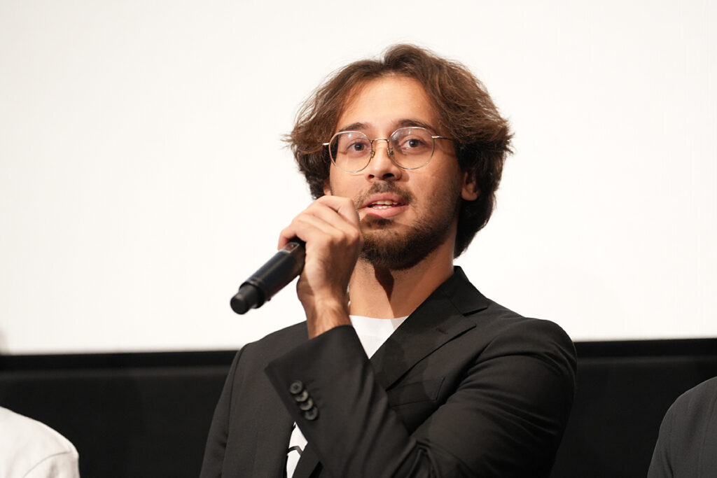 映画の後半、ある場面からは、撮影技法が意図的に変更されているのでは?という質問には、「その通りです。前半の手持ちカメラに対し、後半では三脚で固定されたカメラでの撮影に切り替わっています。これは、物語を追うことよりも、“映画の持つ言語、表現における言語って何なんだろう”という問いに焦点を当て、観客とコミュニケーションを取りたいという演出意図に基づいています。後半ではレンズなど機材も一式変更し、意図的に撮影スタイルを分けました」という。