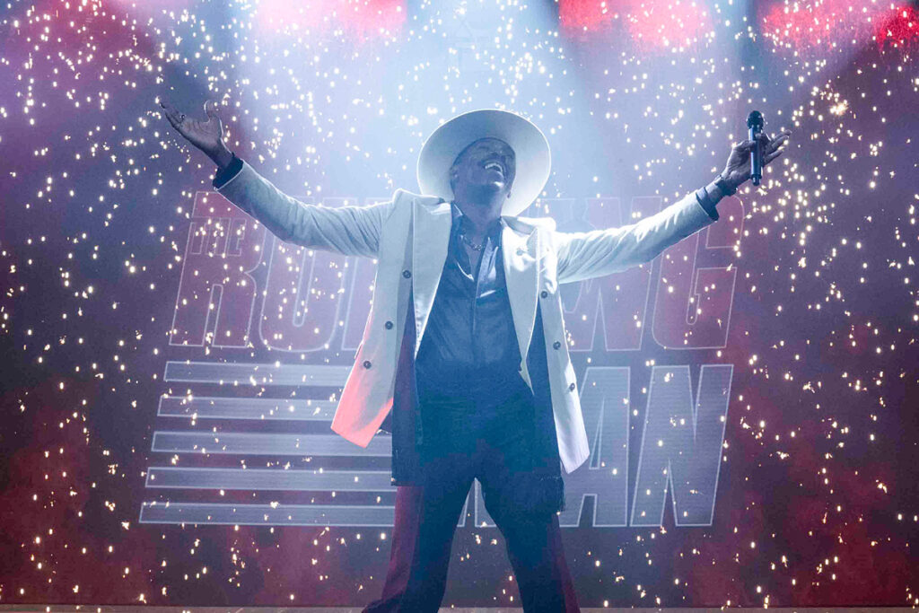 また、脇を固めるキャストも実力派揃いだ。ベンをリアリティーショーへと誘う冷酷なプロデューサーは、「アベンジャーズ」シリーズのサノス役で知られるジョシュ・ブローリン。ド派手に番組を盛り上げる狂気の司会者には、第97回アカデミー賞🄬主演男優賞へのノミネートも記憶に新しいコールマン・ドミンゴが抜擢されている。