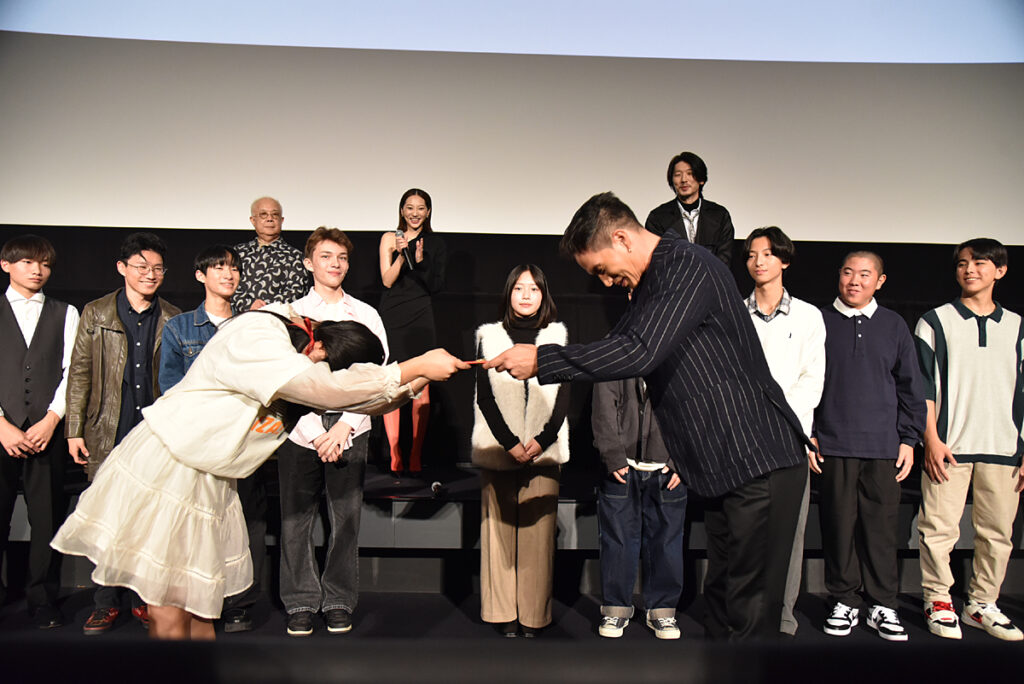 朝早くからの上映会にもかかわらず、劇場は満席で、キャスト陣は口々に感謝を口にする。この日は、市原が田んぼアートに携わった青森県田舎館村で収穫されたお米が来場者にプレゼントされた。ちなみに、この日の舞台挨拶には粒来ケン役の田澤泰粋は欠席となったが、田澤は現在、リアルな修学旅行中とのこと。市原ら登壇陣からは「うらやましい!」という声が上がっていた。