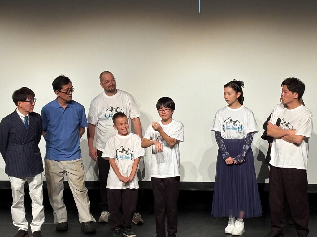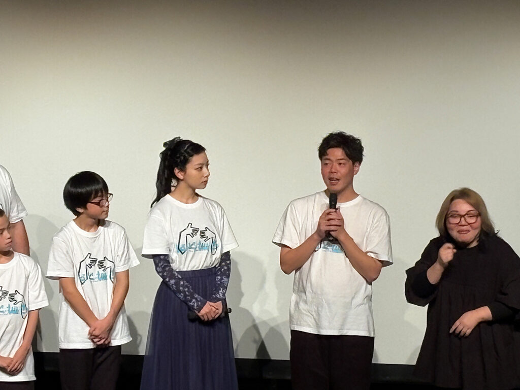 舞台挨拶冒頭、河合健監督らが登壇するも、主人公・夏海の父親・和彦を演じた毛塚和義の姿が見当たらず、登壇者たちが騒ぎ始めると、場内後方から劇中の衣装そのままで毛塚が登場。観客たちは両手を挙げてひらひらと振る動作=手話の拍手で迎えた。