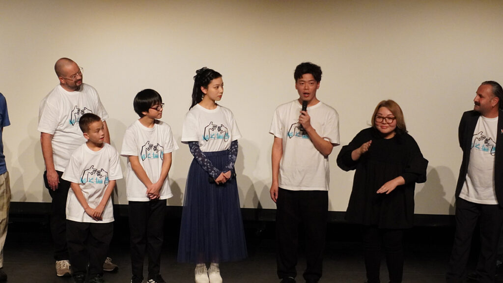 河合監督は、「今日のこの場のように、観客席をろう者と聴者で混ぜこぜにしたいと考えています。11月29日から映画館での公開が始まりますので、ぜひ皆さんのまわりの方々にもお声がけいただけたら! 今まで、ろう者と出会ったことのない聴者の方にも、隣の席で、“あ、ここで反応するんだ”とか新しい発見をしてもらえたらいいな」と力を込め、「ろう者、聴者各々から観た感想をぜひSNS等で書いていただくことで、そういうふうに感じたのか、全然違うんだなとか、有意義なSNSの使い方をこの作品を通してできたらとも思っています。今日観ていただいた皆さんはお客さまというより“仲間”として、どうかご協力いただけますと幸いです」と自身の想いを託した。