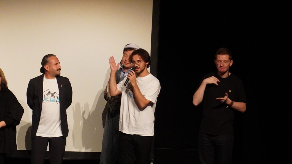 ろう者、聴者、クルド語や日本語以外の言語しか話せないキャストなどさまざまな人々が集まっていたため、意思疎通に苦労したという。また、ヒワ役を演じたユードゥルム・フラットは、日本語のイントネーションにも苦労したそうで、1日で撮り切れなかったシーンがあったと話し、河合監督は「よく見ると天候が少しちがうんです(同じシーンを別日に分けて撮影したため)」と打ち明け、会場は驚きに包まれた。
