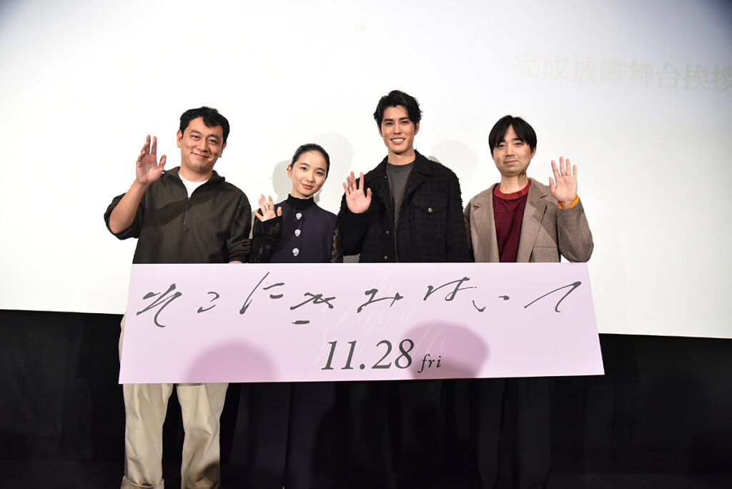 映画『きみにそこはいて』の完成披露試写会が11⽉10⽇(⽉)に都内で開催され、福地桃⼦、寛⼀郎、本作の原案であり、俳優としても参加している中川⿓太郎、⽵⾺靖具監督が揃い舞台挨拶に登壇した。