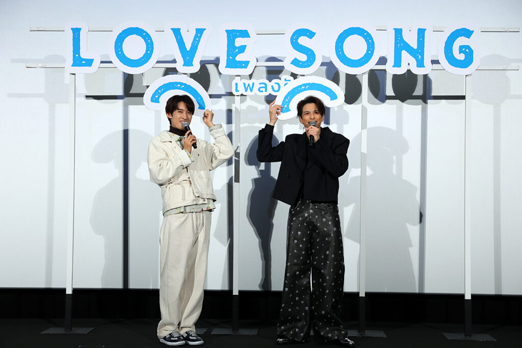 イベントのクライマックスでは、映画のタイトル『(LOVE SONG)』から「()」を外す“完成式”セレモニーが行われた。これは以前のイベントで森崎が「皆さんに作品が届き、たくさんの方に観ていただいた時に、このカッコが外れて、本当の意味での完成になる」と語っていたことにちなんだもの。ステージに設置されたタイトルロゴの両脇に設置された「()」にそれぞれ結ばれたヒモを手にしたふたりだったが、「せーの!」とかけ声を言う前に引っ張るそぶりを見せ、いたずらっ子のようにはしゃいでみせたふたり。だが本番ではしっかりと「()」を外すことに大成功! 会場からは大きな祝福の拍手が送られた。