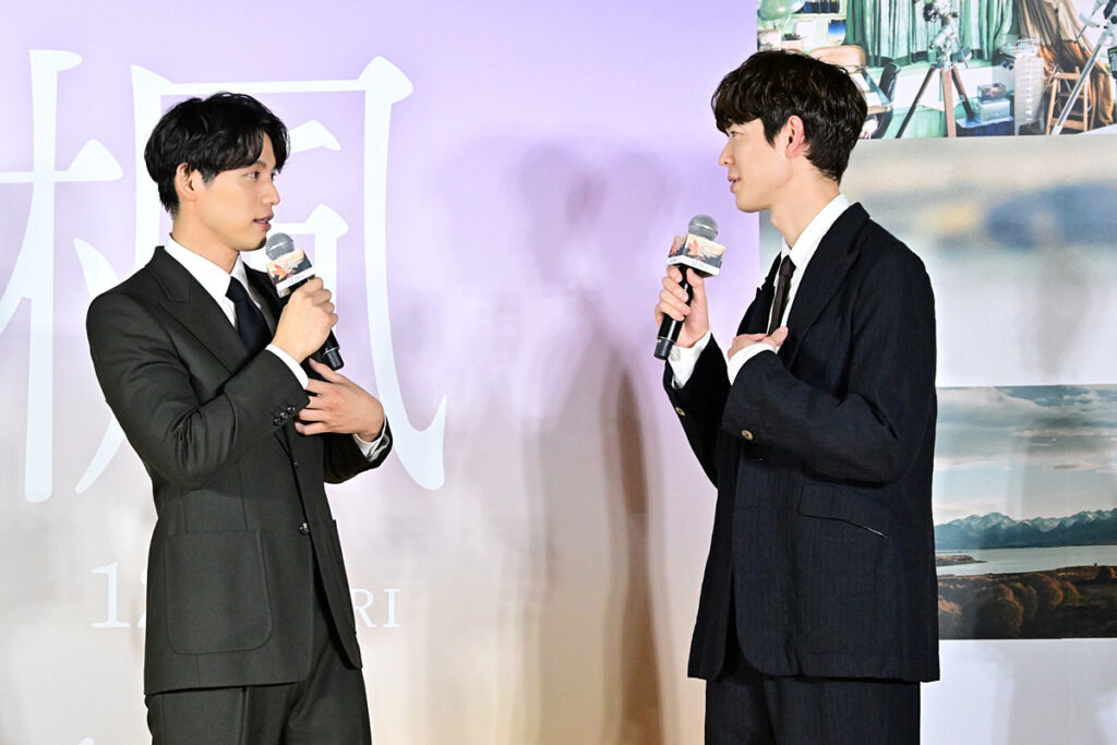 双子の兄弟を演じた福士は「今回双子というやりがいのある役を演じられて嬉しかったです!」と挨拶しながら「スピッツさんの『楓』は僕が5歳の頃にリリースされた曲ですが、だけど当たり前のように知っていたし、カラオケでもよく歌っていました。『楓』という楽曲にお芝居でその世界の住人になれることが感慨深かったですし、どんな作品になるのかワクワクしました」と声を弾ませた。しかも福士にとっては9年ぶりのラブ・ストーリー映画への出演となる。「僕が30代になり、人間の心の内側を表現できる作品だと思いました。人間誰しも生きていると喪失だとか壁だとかがあるけれど、本作の脚本を読んでいく中でそれが修復される物語だと思って、このようなラブ・ストーリーをやってみたいと思いました」と述べた。