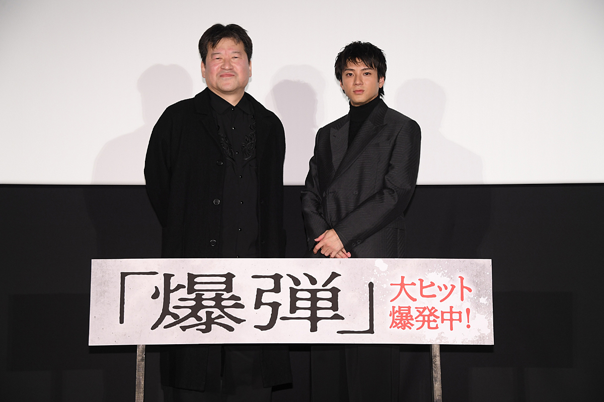 舞台挨拶の最後には、主演の山田と佐藤から観客へメッセージが送られた。山田は、「まずはこうして劇場に観に来てくださって本当にありがとうございます。(この作品は)まだまだ広がると思っています。これはまた僕のこういう言葉を聞いていないところで“『爆弾』観た? まだ観てないとやばいよ?”と広がっているような気がしています。ようやく種が芽を出し始めたくらいなんじゃないかなと本気で思っています。なので皆さん、どうか『爆弾』を爆発させてあげてください。それ以上のことは皆さんが観て受け取ってくださっていると思います。自分もこれだけ面白い作品に携われることは中々ないことだと思うので、いつまでも『爆弾』が見つからないままずっとずっと公開し続けてほしいなと思っています」と熱い思いを語った。