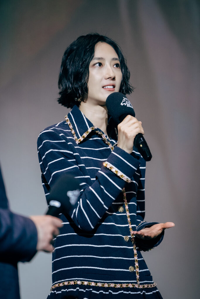 舞台挨拶に登壇した西島は、「大家好,我是西島秀俊」と中国語で挨拶し「真利子監督とはずっと仕事をしたいと思っていました。その監督がアメリカで撮る、そしてグイ・ルンメイさんとご一緒できるということで、きっとすごく大きなチャレンジになる作品だろう、きっと素晴らしい体験ができるだろうと思いました」とオファーを受けた際の心境を語り、ルンメイも「真利子監督からお声がけいただけたことは、本当に光栄でした。監督の作品を拝見して以来、『こんな監督の指導のもとで演じることができたら、私の演技は今までとは違うものになって、これまで見せたことのない力を引き出せるんじゃないか』とずっと思っていました」と振り返り笑顔を見せた。