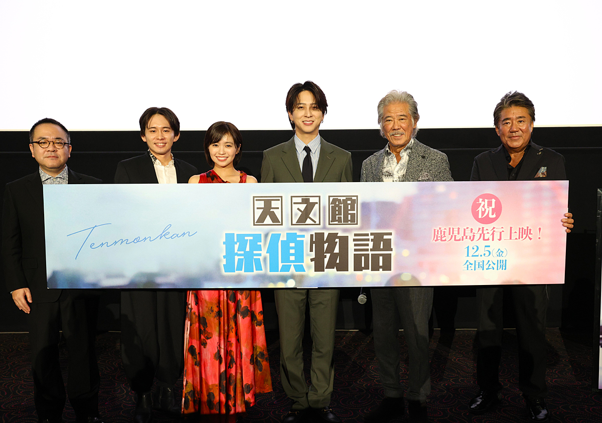 11月26日(木)、主演の寺西拓人を始め、ヒロインを演じた大原優乃、地元・鹿児島出身の肥後遼太郎、寺西と共に舞台の本番真っ最中な中駆けつけた重鎮・西岡德馬、そして、肥後同様鹿児島出身キャストの新名真郎も急きょ登壇が決定。メインキャストが揃い、撮影で協力した鹿児島県の皆さんへのお礼と共に、公開を祝し、舞台挨拶を実施。また、今回、ヒロインを務る大原優乃が<鹿児島ファン拡大アンバサダー>を務めており、また本作への支援もしている鹿児島市より、鹿児島市観光交流局長・堀ノ内勇 氏より公開を祝し、映画を代表し諸江亮監督へ花束の贈呈する一幕もあり、穏やかで温かなムードに包まれたイベントとなった。