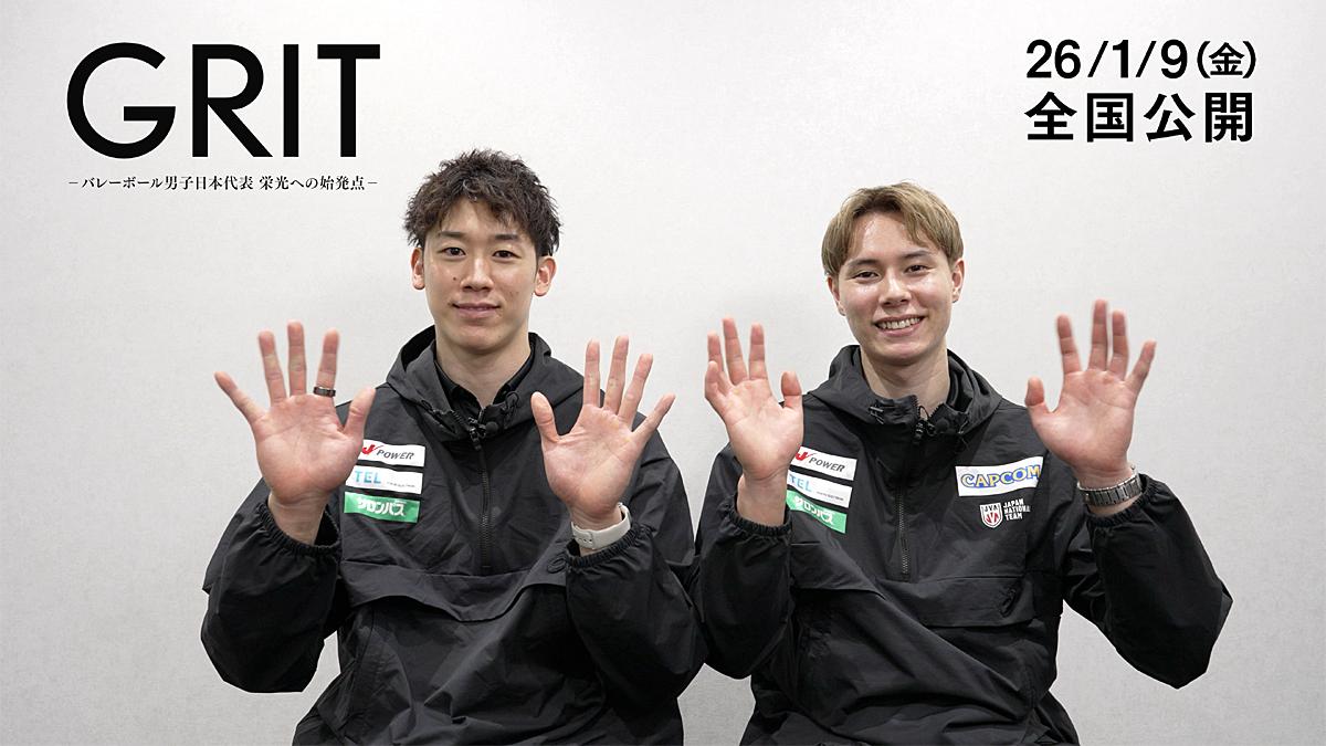 バレーボール男子日本代表初となるドキュメンタリー映画『GRIT —バレーボール男子日本代表 栄光への始発点—』が、2026年1月9日(金)よりTOHOシネマズ日比谷ほか全国の劇場にて3週間限定公開される。