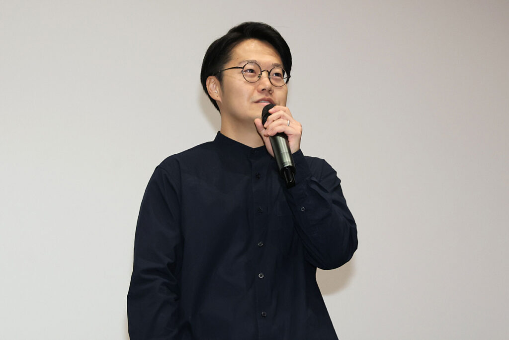 上映後の静かな余韻に包まれている会場に向けて、「なるべく皆さんのこの余韻と時間を邪魔しないように。短い時間ですがよろしくお願いします」と挨拶した大森監督。