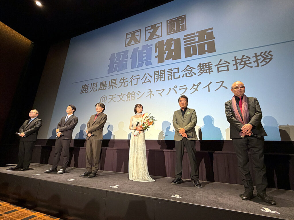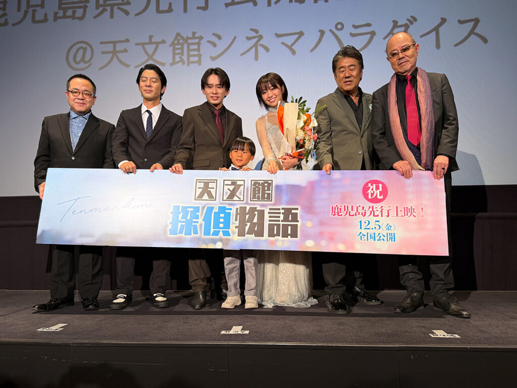 鹿児島県で先行公開中の映画『天文館探偵物語』の舞台挨拶第2弾が、11月28日(金)、天文館シネマパラダイスにて開催された。本作ゆかりの地でのイベントということもあり、会場には早くから多くの観客が集まり、地元キャストを迎える温かい空気に包まれた。