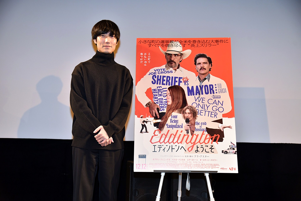 『ヘレディタリー/継承』『ミッドサマー』『ボーはおそれている』に続きA24製作で贈る、アリ・アスター監督の最新作『エディントンへようこそ』が、12月12日(金)に全国公開! この度、アリ・アスター監督最新作『エディントンへようこそ』の試写会が11月30日(日)に都内で開催され、上映後にはアリ・アスター作品のファンで、映画『秒速5センチメートル』が大ヒット中の奥山由之監督のトークセッションが開催された。