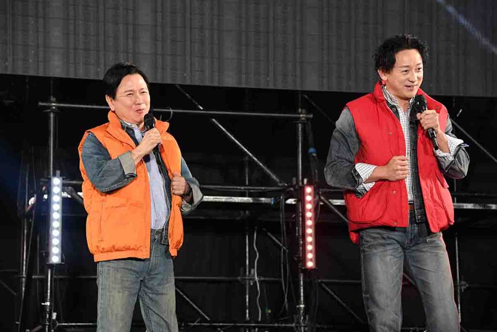 続いて、スペシャルゲストとして“日本のマーティ・マクフライ”こと、声優の三ツ矢雄二がステージに招き入れられた。三ツ矢も山本と同じくマーティ風のダウンベストを着て登場し、「Wマーティでやってきました!」と笑顔で登場すると、往年のファンからは大きな歓声が上がった。