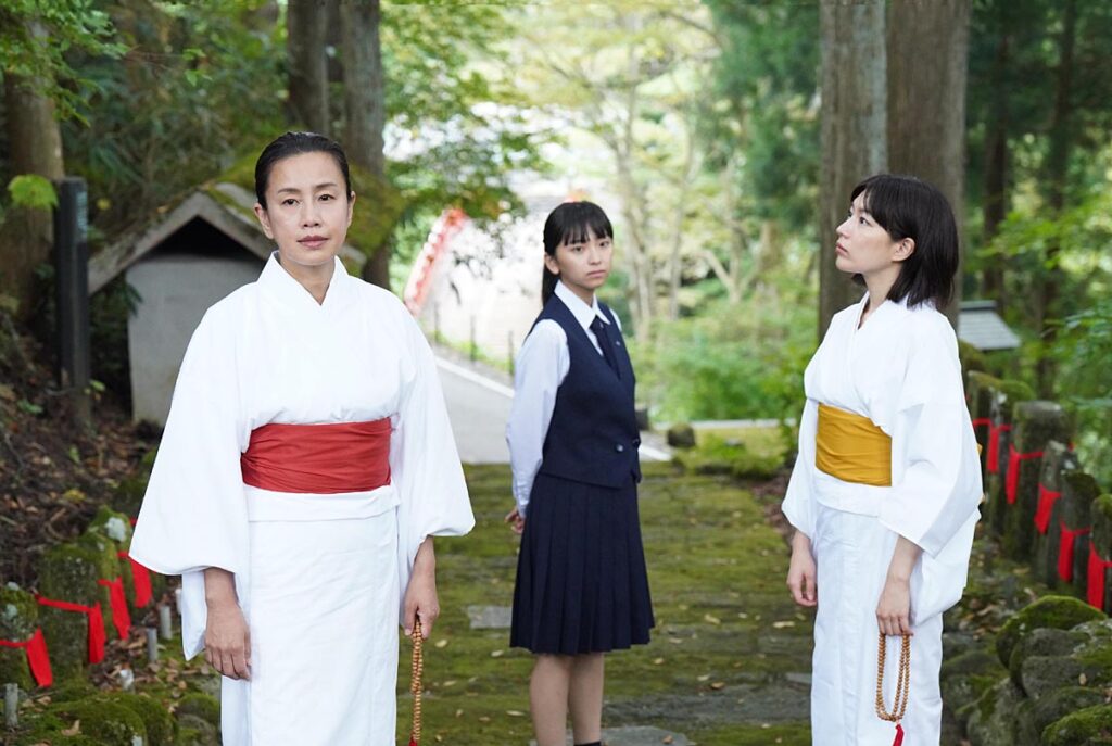 今回解禁されたのは、渡辺真起子扮する由起子、陣野小和扮する沙梨、木竜麻生扮する夏葉ら「布橋灌頂会」に集った異なる世代の女性たちが、儀式を通して身も心も癒され、穏やかな表情を浮かべているスチール。本作のメッセージであり、儀式のテーマでもある“心の再生と新たな始まり”の瞬間が捉えられています。また、室井滋演じる由起子の叔母・美佐江や、東京からやってきた由起子を乗せる吉岡睦雄演じるタクシー運転手の姿も。