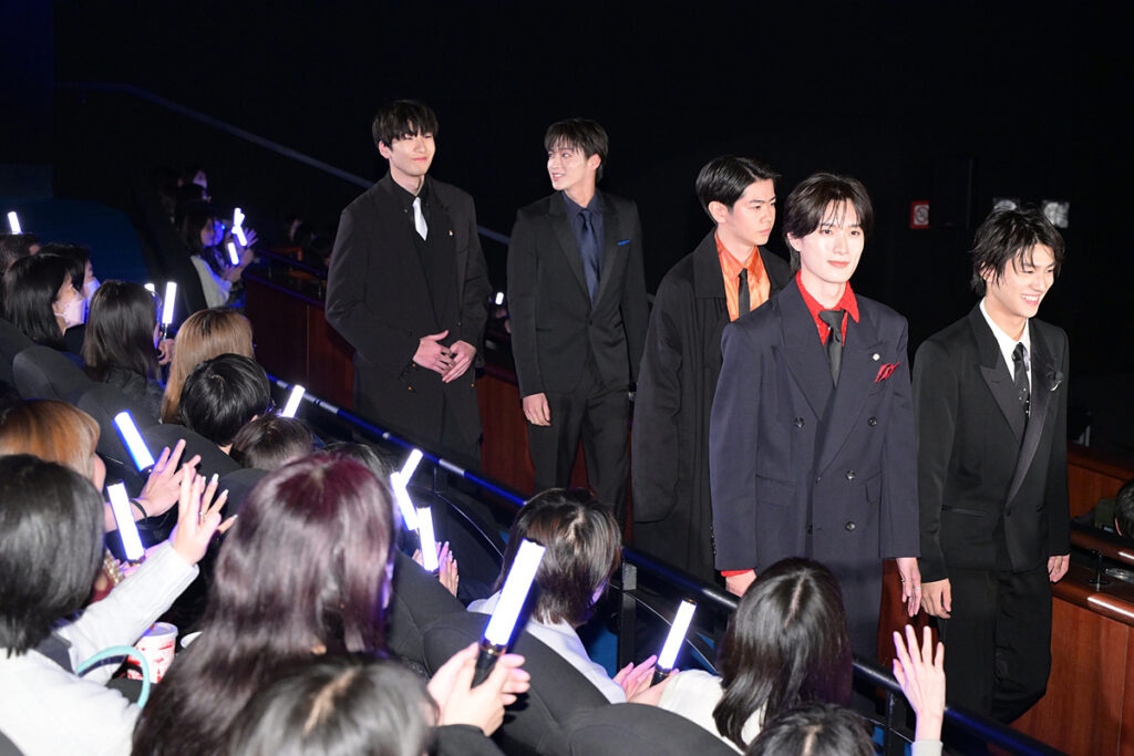 また、松本と荒木を挙げた秋谷から「怜生君が(染五郎を含む)6人の中では最年長で、普段は優しく面倒を見てくれるのですが、たまに強めのツッコミが飛んでくることもあってドキッとするんです。でも、そんな時に食い下がるのが最年少の(荒木)飛羽で……」と、二人の意外な素顔が明かされると、松本が「結局、“染ちゃん”(染五郎)が一番大人だったよね(笑)?」と一同を諭し、笑いを誘った。最後に染五郎にからは「黒崎君が舞台をやっていて、叔母の松たか子と親子役をやられているので観に行かせていただいたのですが、本作では不良な役だが舞台では純真な青年役をやられていて、役幅にびっくりしました」と俳優としても同世代として刺激し合う関係性を明かした。