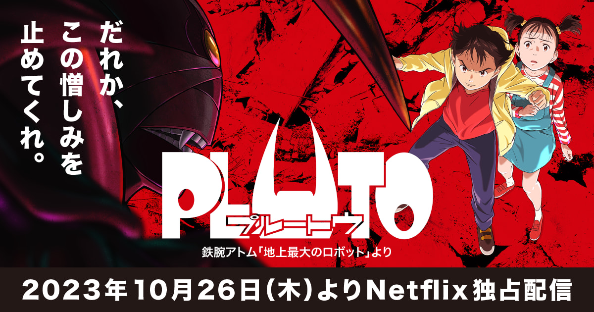 『20世紀少年』、『YAWARA!』、『MASTERキートン』(脚本:勝鹿北星・長崎尚志)など数々のヒット作を生み出している鬼才・浦沢直樹が漫画の父と称される手塚治虫が生み出した『鉄腕アトム』の一篇『地上最大のロボット』(1964)を原案に、長年作品を共につくってきた長崎尚志をプロデューサーに迎え、葛藤しながら描き上げた傑作『PLUTO』(2003)。人間と高性能ロボットが完全に共生する近未来で起こる上質なサスペンス・ドラマは、手塚治虫文化賞マンガ大賞をはじめ、2011年アングレーム国際漫画フェスティバルにてインタージェネレーション賞を、その他ACBDアジア賞を受賞するなど国内外高い評価を得た。2015年に舞台化され、2018年には好評につき再演を果たし、日本はもちろん、イギリス、オランダ・ベルギーと欧州ツアーも敢行された。多くのファンに映像化を待ち望まれていた作品がついにアニメとして表現される。